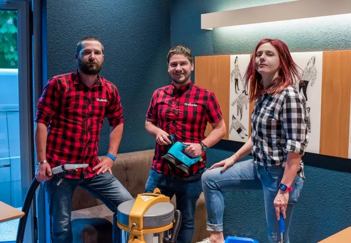 За корпоративни клиенти (офиси, банки, заведения и други) при, които почистването през деня е невъзможно - фирма Мебеле разполага с екипи за нощен режим на работа.